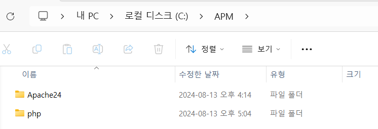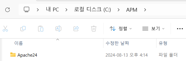 C:/APM 폴더 생성 후 압축받은 파일 Apache24 폴더 복사 or 이동