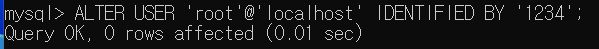3-5 ALTER USER 'roor'@'localhost' IDENTIFIED BY '사용할비번';
