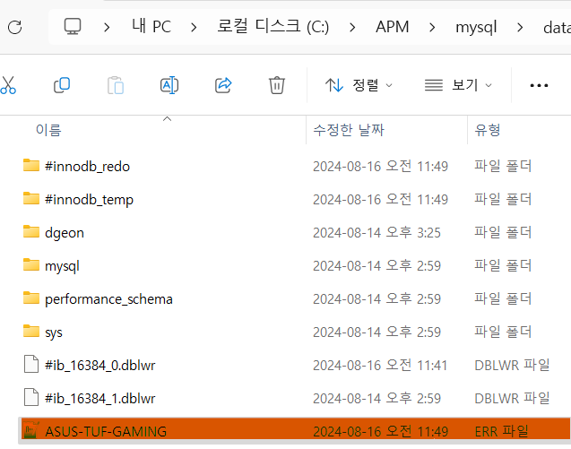 3-3-3 C:\APM\mysql\data PC이름.err 파일 ,