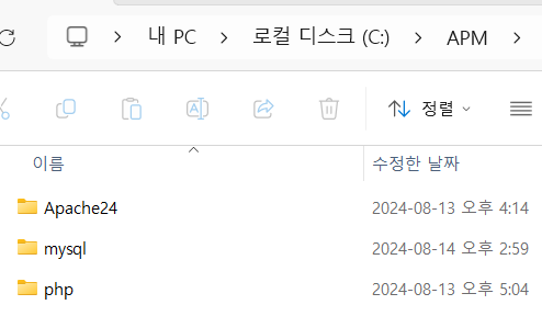 C:/APM 폴더 생성 후 압축받은 파일 Apache24 폴더 복사 or 이동