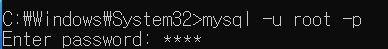3-4 cmd(관리자권한) mysql -u -root -p 임시비밀번호 입력 후 접속