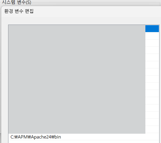 1-5. 환경변수 - 시스템 변수 - path 추가 C:/APM/Apache24/bin
